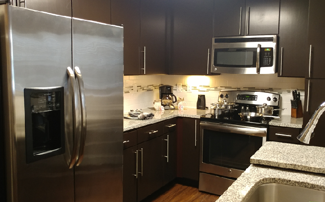 Vanguard Crossing offers luxury corporate housing and furnished apartments in University City, MO (near U-City loop). Located in prestigious University City and within walking distance to Clayton and Shaw Park, this property is the ideal temporary living environment for those who want to make the most of luxury living. Easy highway access will put you just minutes away from downtown. This extended stay apartment community has been uniquely designed to surround lush courtyards and green space that center around a relaxing saltwater pool deck complete with an outdoor kitchen and cabana. Our Vanguard Crossing luxury corporate apartments also feature an amazing fitness center and separate yoga room, resident lounge complete with billiards tables, and residents can rent a locker in the properties climate controlled wine cellar. All of our corporate homes of Vanguard Crossing feature 9 – 10 ft ceilings with crown molding.
